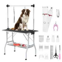Advwin Pet Grooming Table + Black Pet Clipper Kit Pet Hair Clipper Adjustable Dog Cat Grooming Table 1 Loop