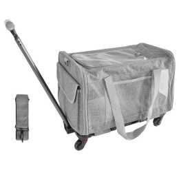 Pet Rolling Travel Carrier Pet Rolling Luggage Trolley Case for Pet up to 7.5kg With Handle Four Wheels Shoulder Strap and Pet Cushion for Cat Dog Grey