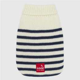 Classic Navy & White Stripe Dog Cardigan - Stretch Knit Pullover (Large 40 cm)