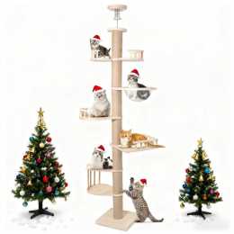 Advwin Cat Tree Wood Tower Scratching Post Scratcher Floor to Ceiling 230cm-245cm