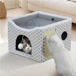 ACA 2 Layers Grey Cat Dog House Foldable Large Covered Small Pet Sleeping Bed Cat Scratcher Cave